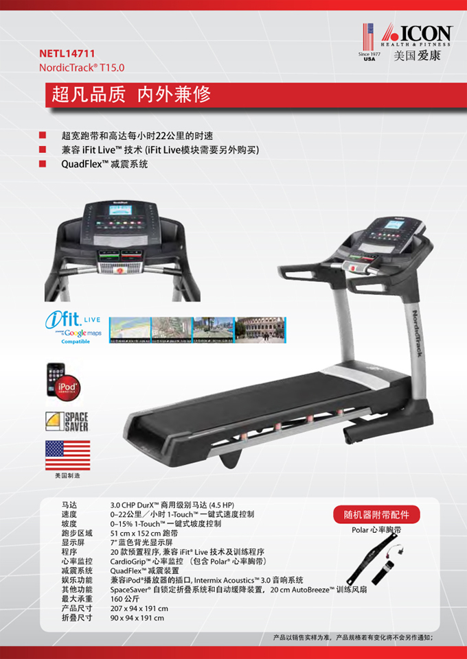 美国爱康14711,购买即送跑步机垫