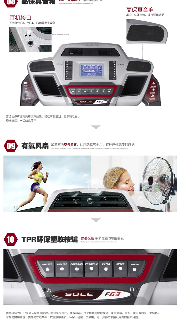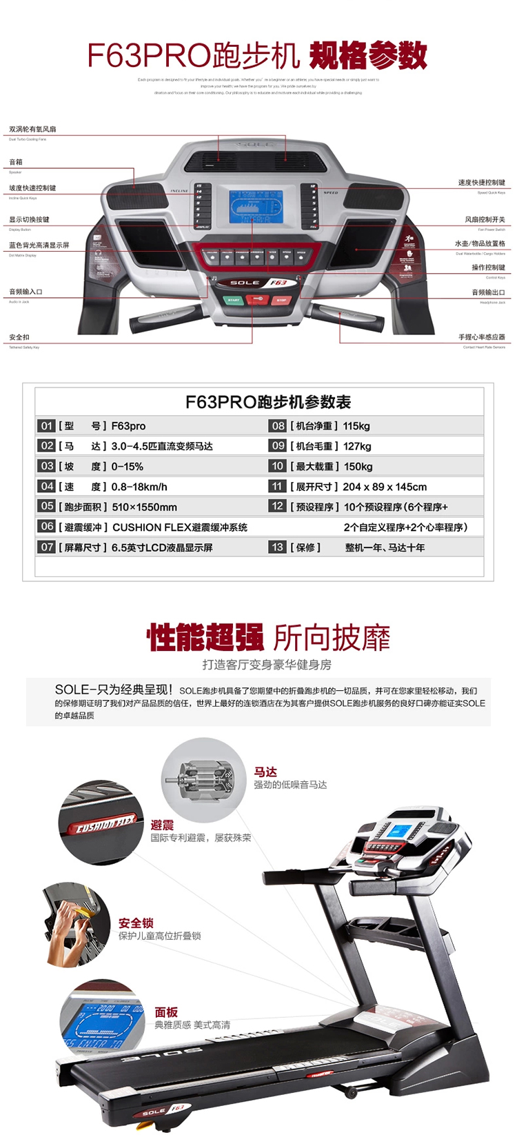美国sole速尔F63PRO静音家用折叠电动跑步机