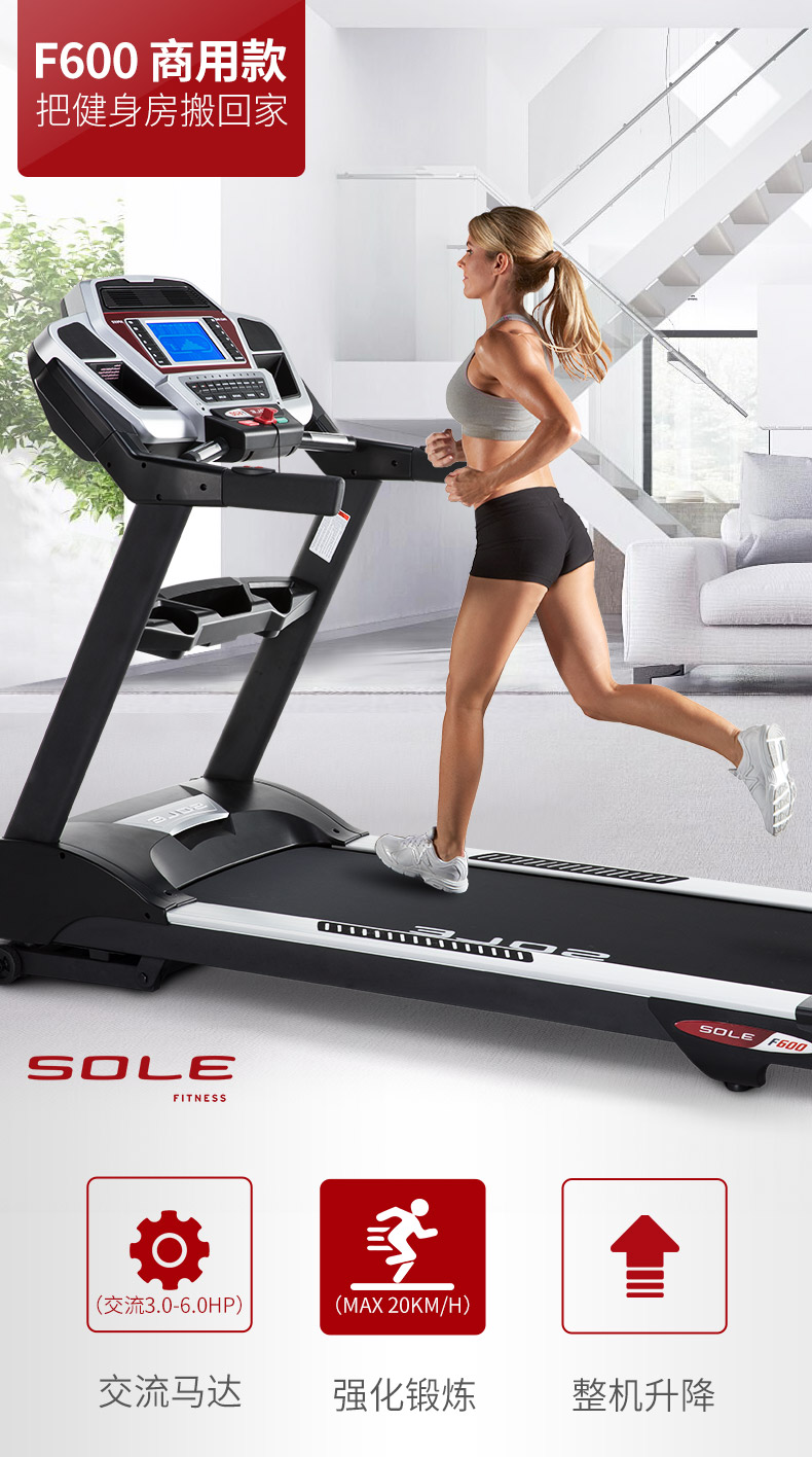 美国SOLE速尔F600商用静音跑步机