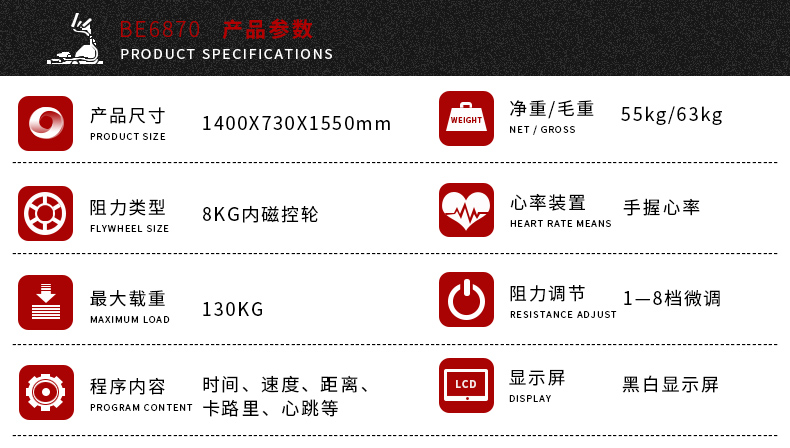 艾威BE6870磁控静音太空漫步登山椭圆机