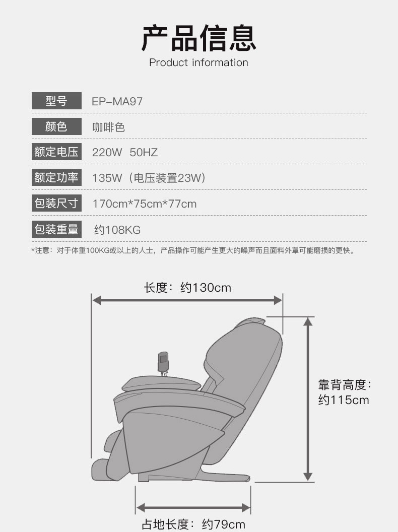 Panasonic/松下新品MA97智能多功能沙发按摩椅