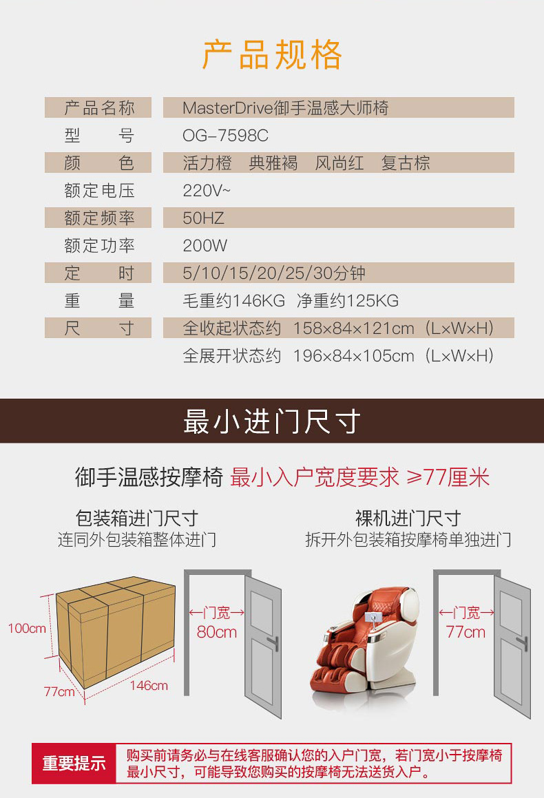 OGAWA/奥佳华 家用全身豪华4d按摩沙发OG7598
